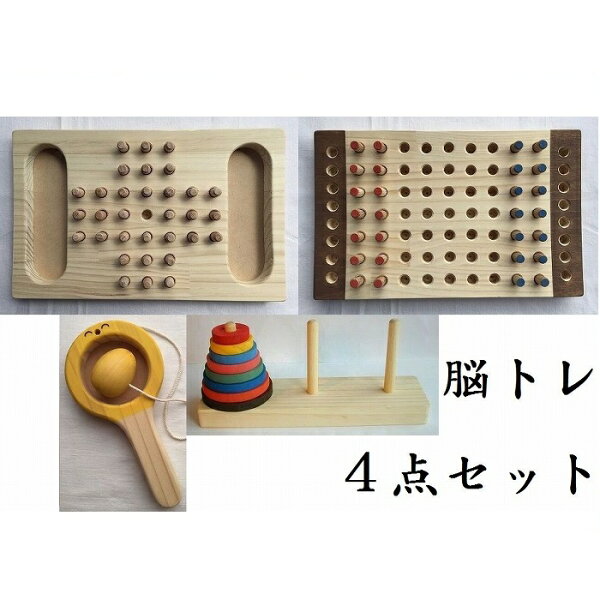 商品詳細 名称 【ギフト用】木のおもちゃ「脳トレ4点セットC」 商品概要 「縦横とんだらポイ」は、中央だけ棒がない状態からスタート、棒を縦か横に一本飛越し、飛び越された棒を外してトレイに入れる。