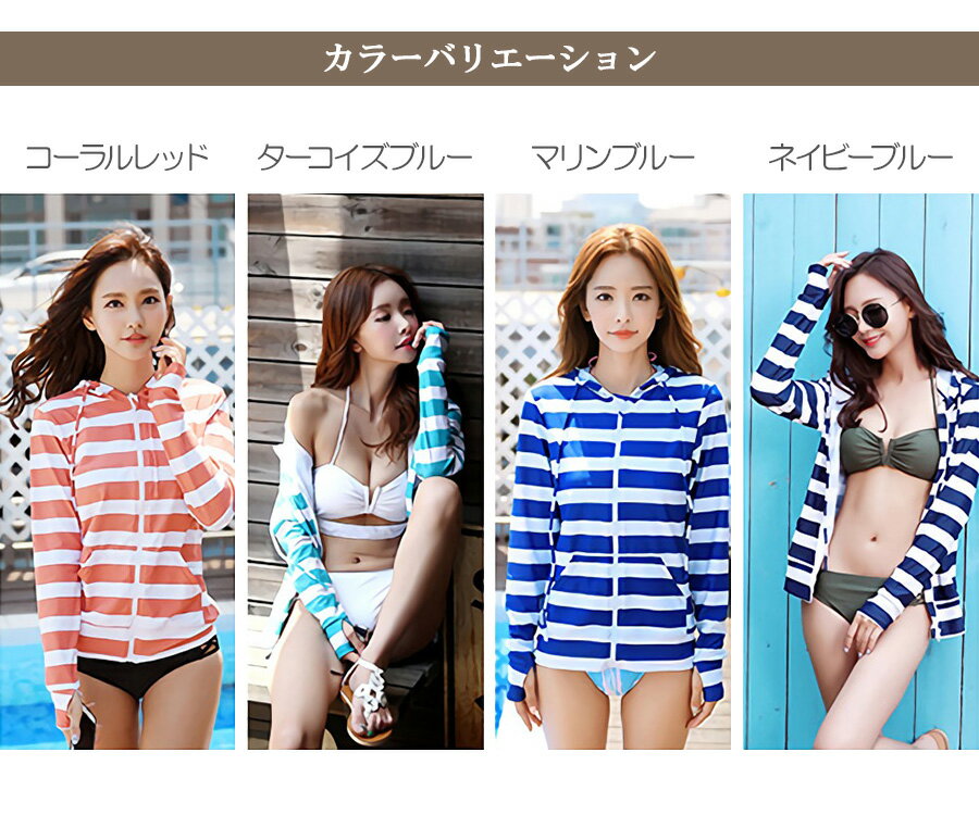 ボーダー柄 UPF50 レディース 長袖ラッシュガード UVカット 日焼け止めだけでは不安だから、ラッシュガードでしっかりUV対策☆